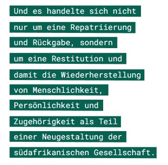 Die Idee der Rehumanisierung – der Wiederherstellung einer Menschlichkeit und Humanität, die zuvor entfernt oder verweigert wurde – ist nicht neu. Dennoch wurde der Begriff „Rehumanisierung” vermutlich zum ersten Mal in einem Museumskontext verwendet, als die ancestral remains des Ehepaars Klaas und Trooi Pienaar im Jahr 2012 von Österreichs Hauptstadt Wien nach Kuruman in Südafrika zurückgebracht wurden.
